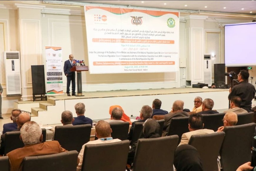 شهد رئيس مجلس الوزراء، سالم صالح بن بريك، اليوم الثلاثاء، في العاصمة الموقتة عدن، الاحتفال باليوم العالمي للسكان 2025، والذي أقامه المجلس الوطني للسكان بالتعاون مع صندوق الأمم المتحدة للسكان، تحت شعار (تمكين الشباب من تكوين الأسر التي يريدونها في عالم عادل ومفعم بالأمل).
