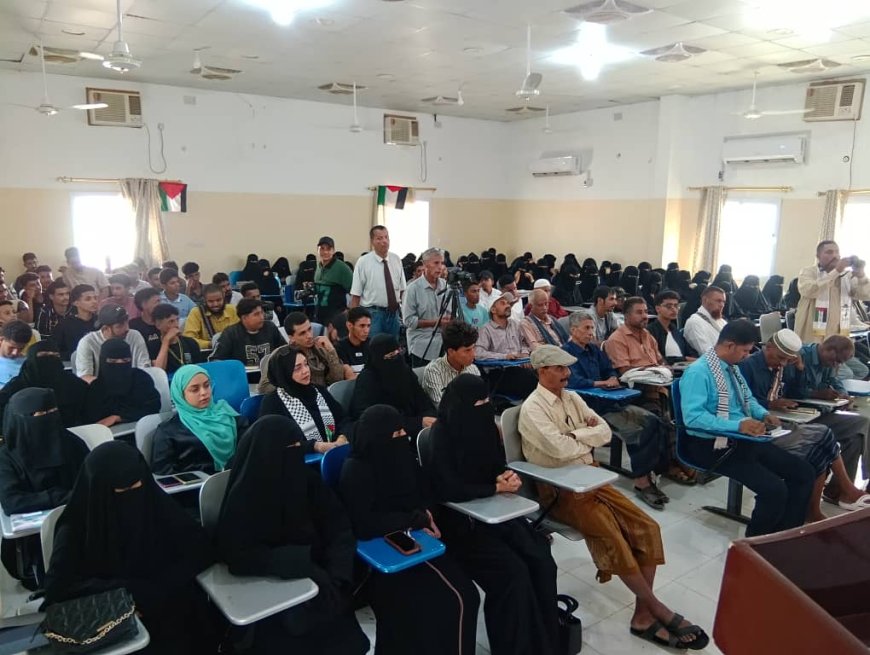 بمناسبة اليوم العالمي للسلام، وبرعاية رئيس جامعة أبين أ.د. محمود الميسري وبحضور وكيل محافظة أبين لشؤون التعليم د. عبدالعزيز الحمزة، نظم مركز التراث الشعبي والدراسات بجامعة أبين والمبادرة الوطنية للمحبة والسلام صباح اليوم الثلاثاء بقاعة المحافظ في ديوان عام الجامعة بمدينة زنجبار، ندوة علمية عن "الأبعاد الإستراتيجية الإنسانية والسياسية والقانونية والتاريخية للحرب التي يشنها الإحتلال الصهيوني ضد الشعب الفلسطيني في قطاع غزة".