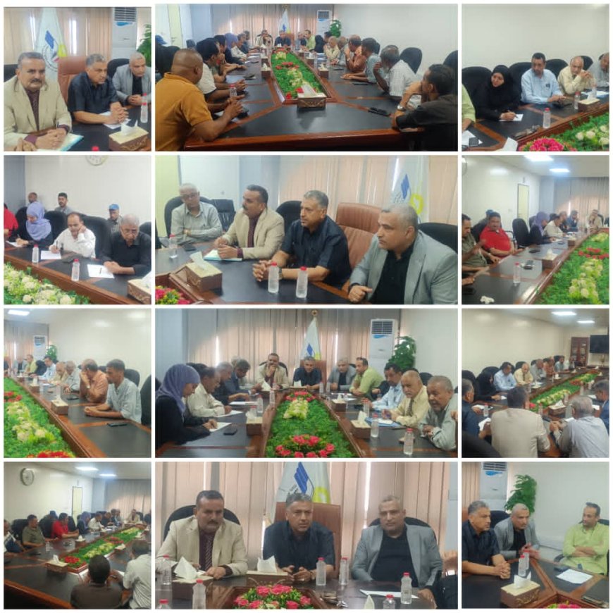 جاء ذلك خلال الاجتماع الموسع الذي عقد صباح اليوم بمبنى مطار عدن الدولي برئاسة نائب المحافظ أمين عام المجلس بدر معاون سعيد .