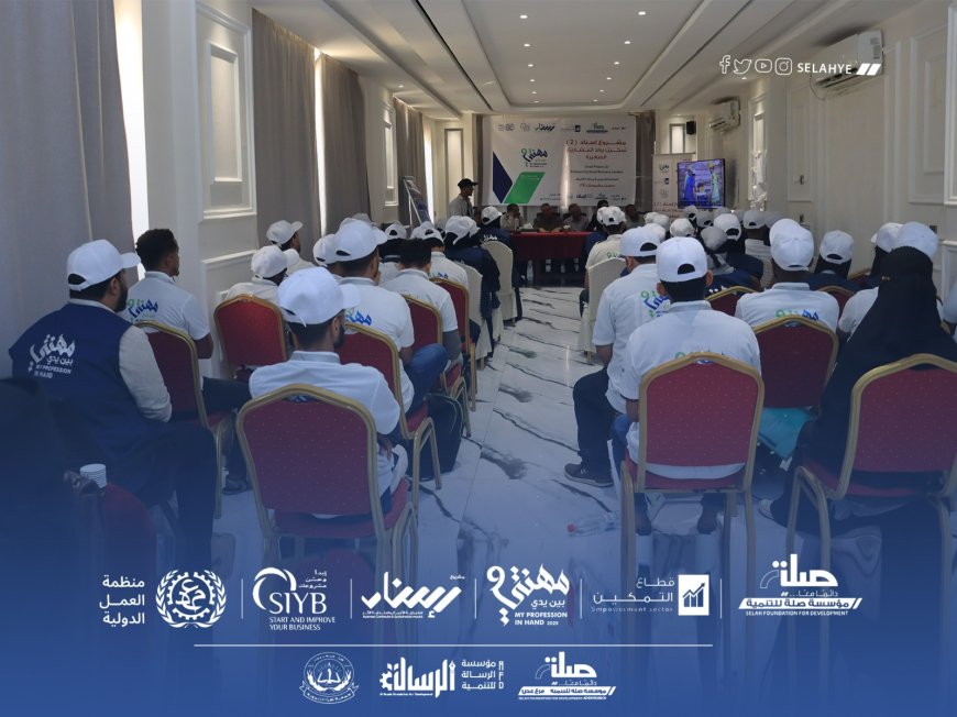 دشنت مؤسسة صِلَة للتنمية – مكتب عدن صباح اليوم مشروع "إسناد (2)" لتمكين رواد المشاريع الصغيرة، ضمن برنامج مهنتي بين يدي، وبالشراكة مع منظمة العمل الدولية (ILO)، في إطار البرنامج التدريبي "حسّن مشروعك – IYB"، الهادف إلى تطوير مهارات رواد الأعمال الشباب وتعزيز فرص استدامة مشاريعهم الصغيرة.