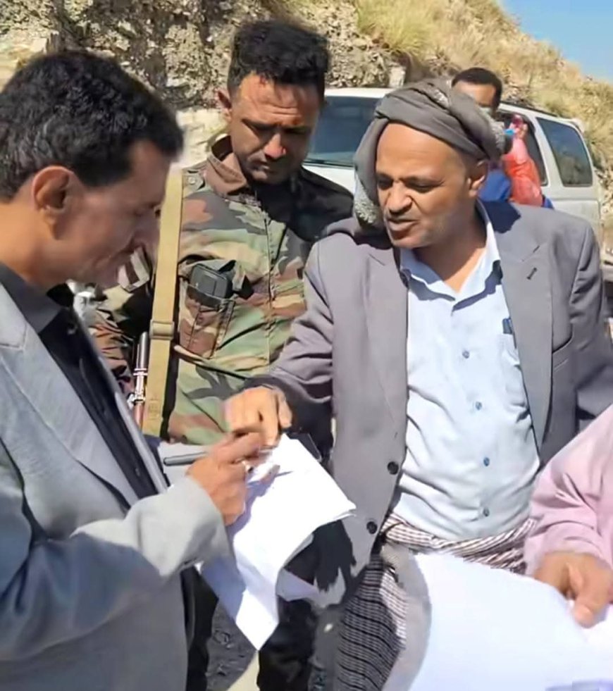 كما كلف، أثناء الزيارة، لجنة مكونة من (أمين عام المجلس المحلي، ومدير فرع الأشغال العامة، ورئيس الوحدة المحاسبية بفرع مكتب المالية)، للقيام بحصر الأعمال المنجزة مع المقاول وصرف مستحقاتها، إلى جانب حصر الأعمال المتبقية ومباشرة تنفيذها، والتي تشمل شق الطريق، إقامة جدار ساند، وعمل المعالجات اللازمة لفتح ممر للمنازل في أعلى الجبل، بتمويل من المجلس المحلي.