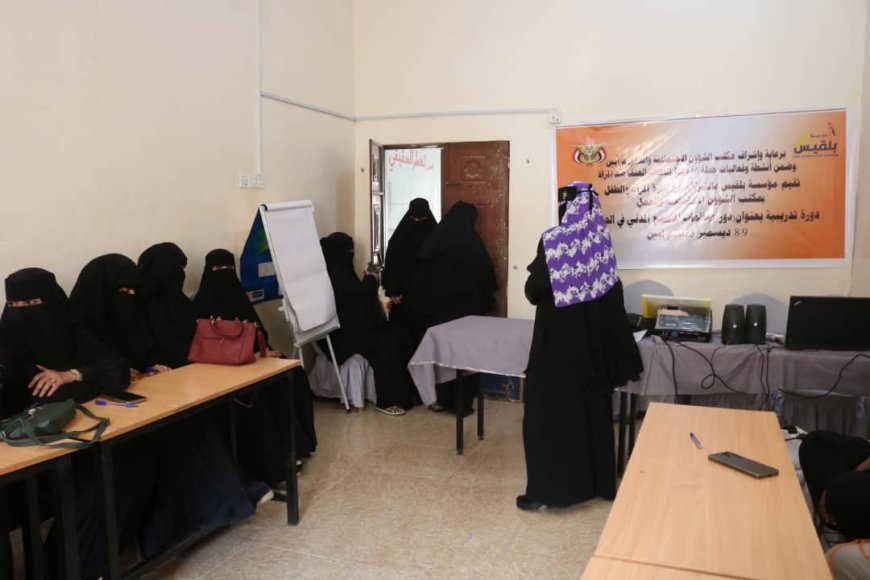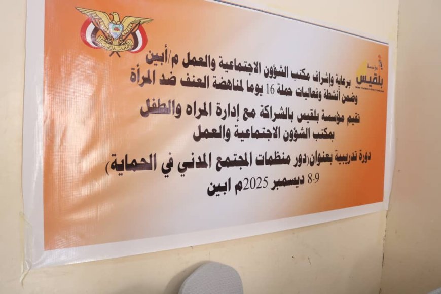 برعاية كريمة من مكتب الشؤون الاجتماعية والعمل بمحافظة أبين، وفي إطار فعاليات حملة 16 يومًا لمناهضة العنف ضد المرأة، نفذت مؤسسة بلقيس للنماء والتطوير وبالشراكة مع إدارة المرأة والطفل في مكتب الشؤون الاجتماعية، دورة تدريبية بعنوان: "دور منظمات المجتمع المحلي في الحماية"، شارك فيها عدد من ممثلي منظمات المجتمع المدني بمديريتي زنجبار وخنفر.