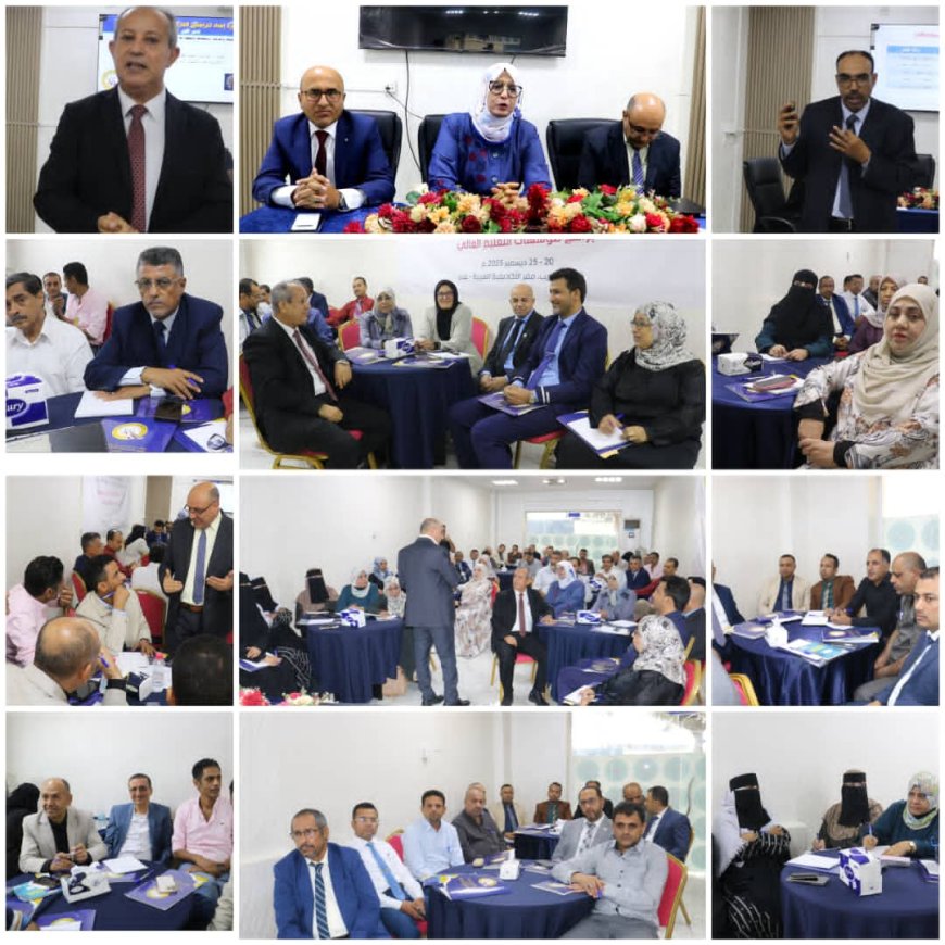نظم صباح اليوم في العاصمة عدن مجلس الاعتماد الأكاديمي وضمان جودة التعليم العالي بالشراكة مع الأكاديمية العربية للعلوم الإدارية والمالية والمصرفية دورة اعداد وتأهيل المراجعين الخارجيين لتقييم برامج مؤسسات التعليم العالي للفترة 20 - 25 ديسمبر 2025 م .