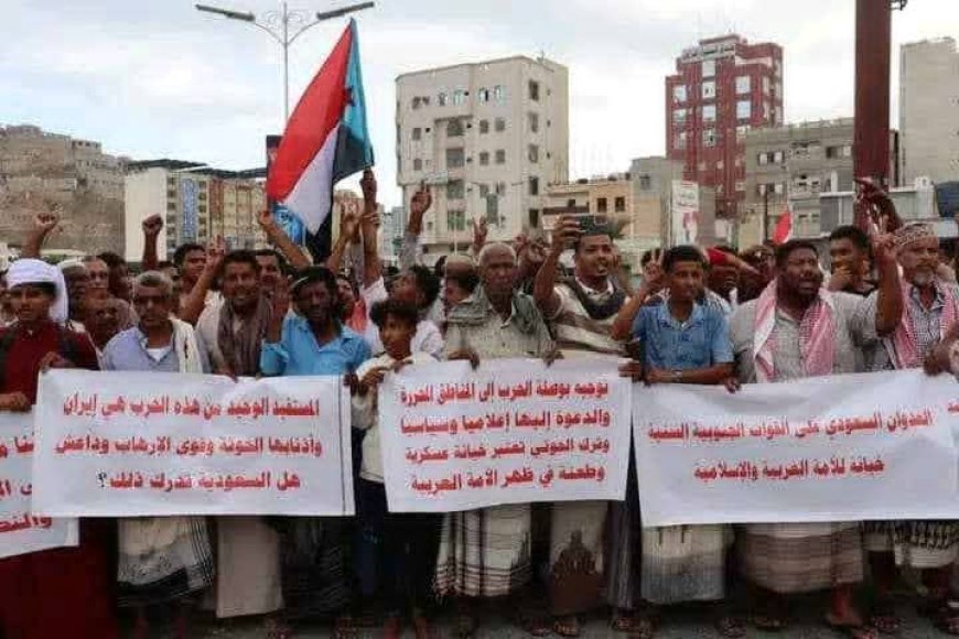 حشود غفيرة من أبناء محافظة حضرموت تحيي في هذه الأثناء فعالية احتجاحية جماهيرية بمدينة المكلا، تنديدا بالحرب الغاشمة على الجنوب العربي من قبل العدوان السعودي الشمالي.