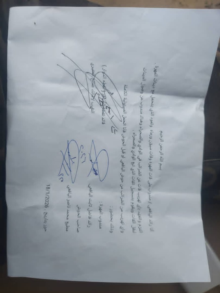 وفي السياق ذاته أكدت مصادر محلية أن المستثمرين ملتزمون قانوناً ويملكون وثائق رسمية من بينها تعهد رسمي محرر بتاريخ 18 يناير 2026، وموقّع بإشراف النقيب مالك صالح العشيري قائد نقطة المسافر، يثبت التزامهم بالضوابط ويفند ادعاءات التهريب مما يجعل استمرار ابتزازهم جريمة مشهودة وتعدياً سافراً على النظام والقانون.