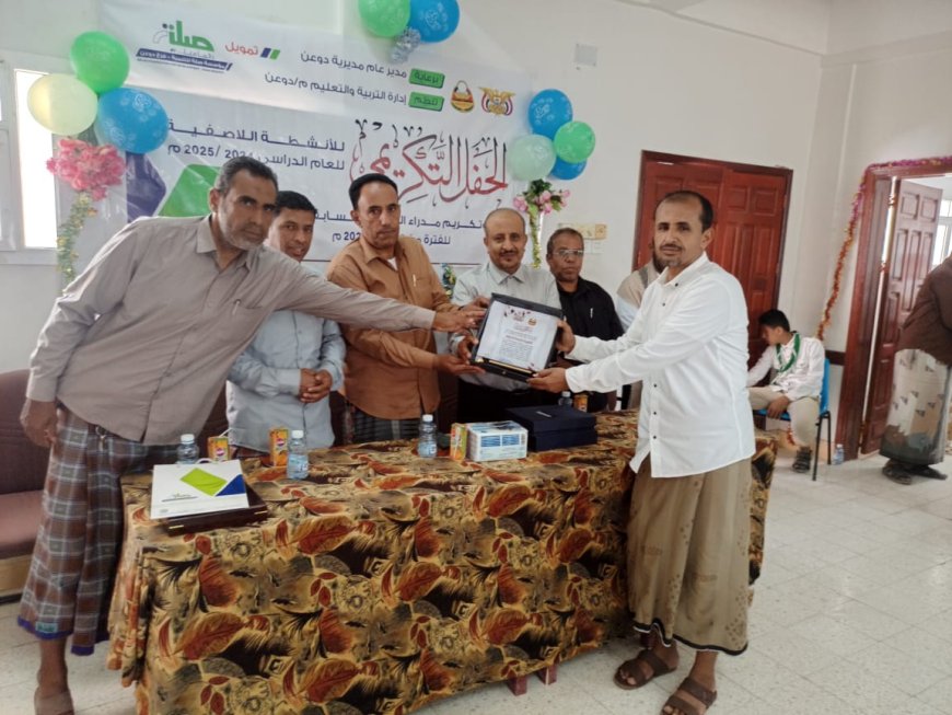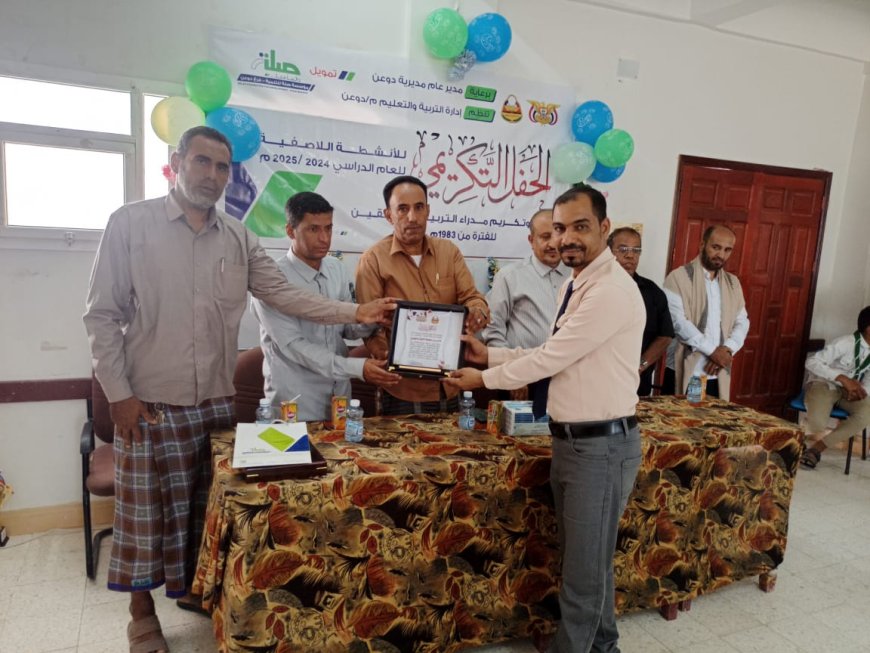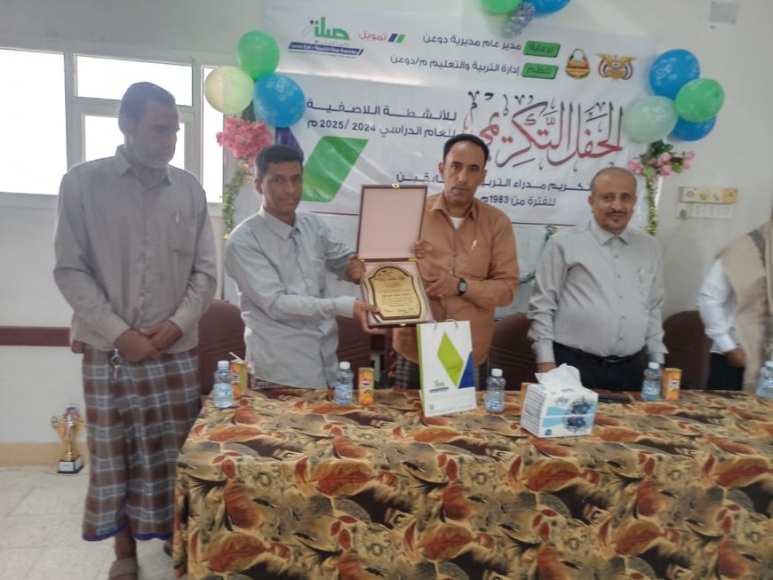 كرّمت إدارة التربية والتعليم بمديرية دوعن اليوم الخميس في احتفالية أقيمت برعاية مدير عام مديرية دوعن الأستاذ عبدالله حسين مقيبل وتمويل مؤسسة صلة للتنمبة فرع دوعن